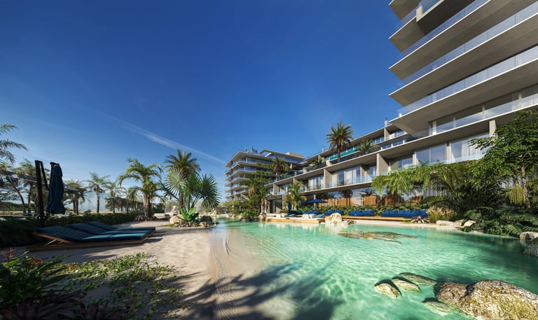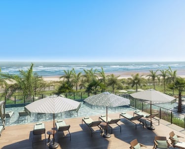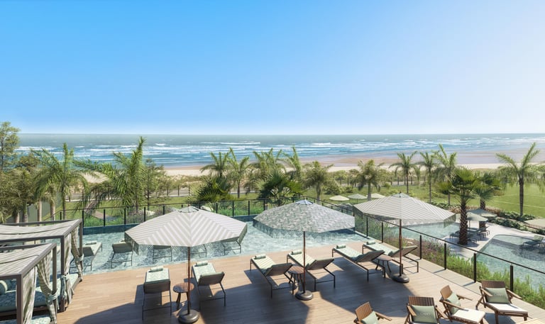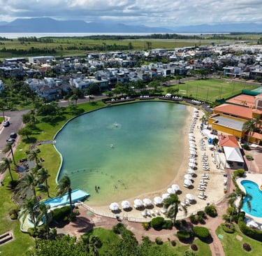 Beach club privado com 5 piscinas.